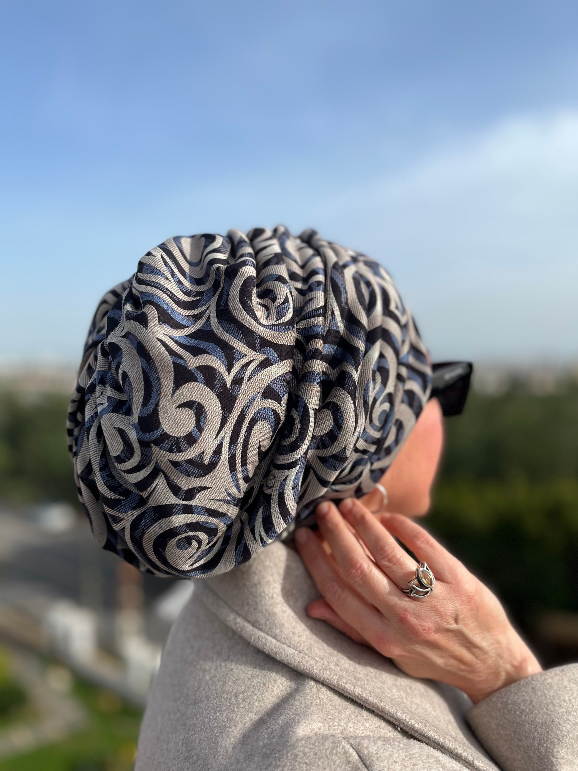 DALGA DESENLİ MENEKŞE BÜZGÜLÜ BONE