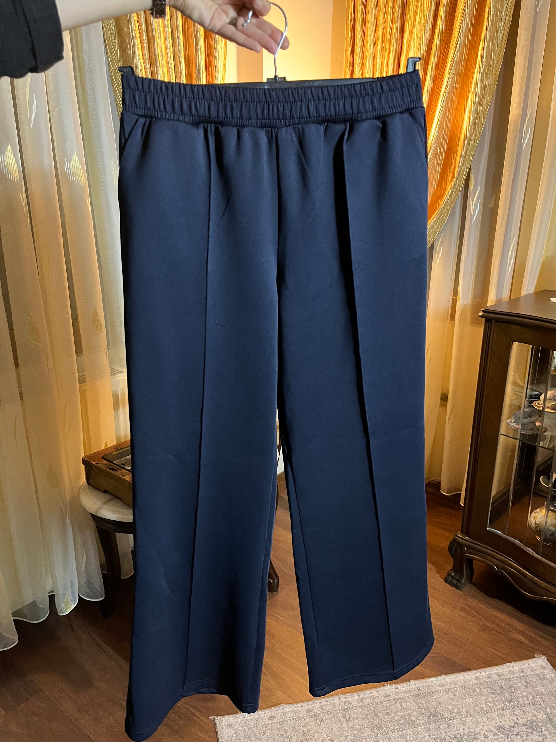 Dikiş İzli Bol Paça Scuba Pantolon (Lacivert)