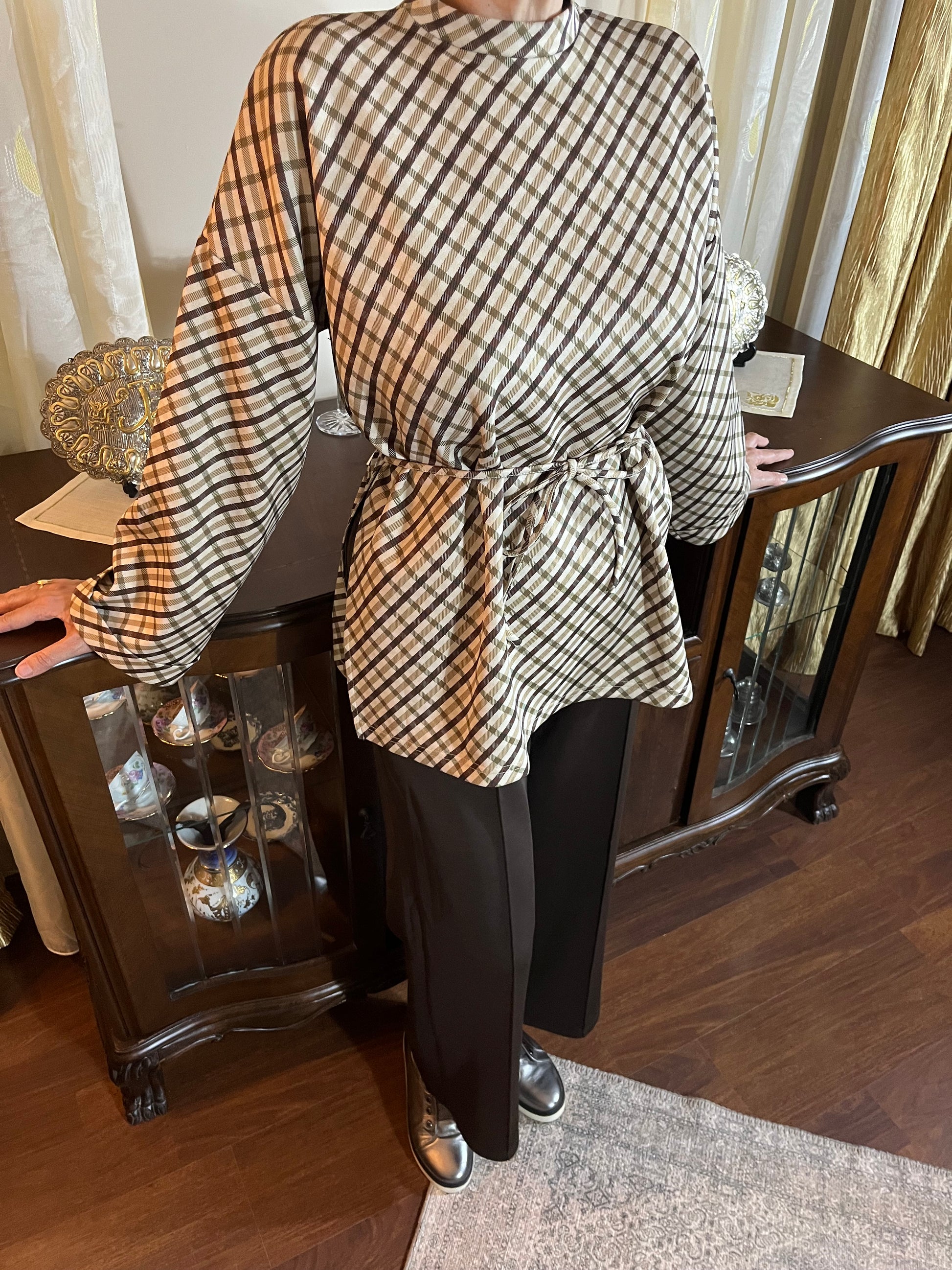 EKOSE DESENLİ SCUBA TUNİK - KAHVERENGİ