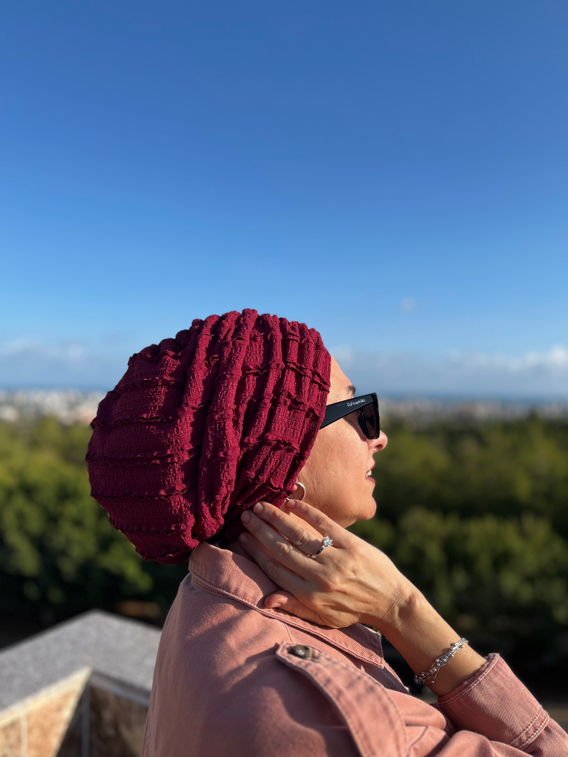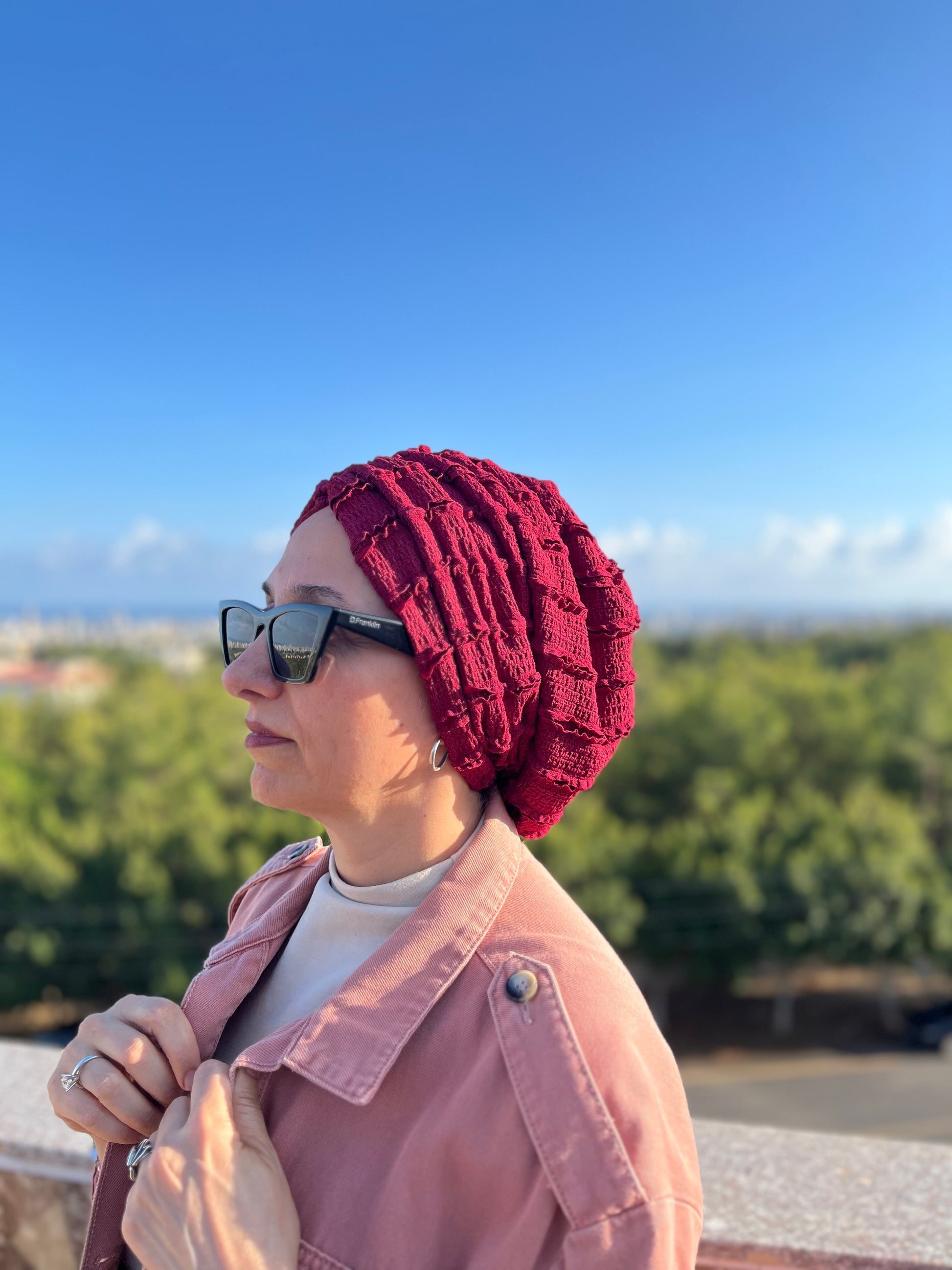 Canlı kırmızı rengiyle enerjiyi ve zarafeti bir araya getiren Kırmızı Bürümcük Büzgülü Bone, stiline güçlü bir dokunuş katmak isteyenler için ideal bir seçimdir. Esnek bürümcük kumaşı sayesinde hafif, nefes alabilen ve gün boyu rahat bir kullanım sağlar. Büzgülü tasarımı başta şık bir duruş oluştururken pratikliğiyle öne çıkar.