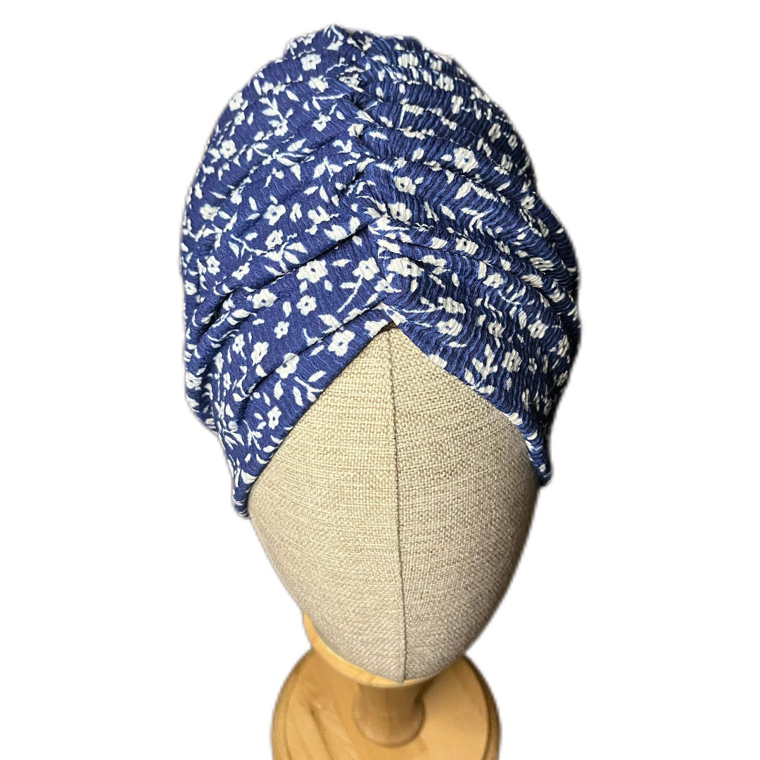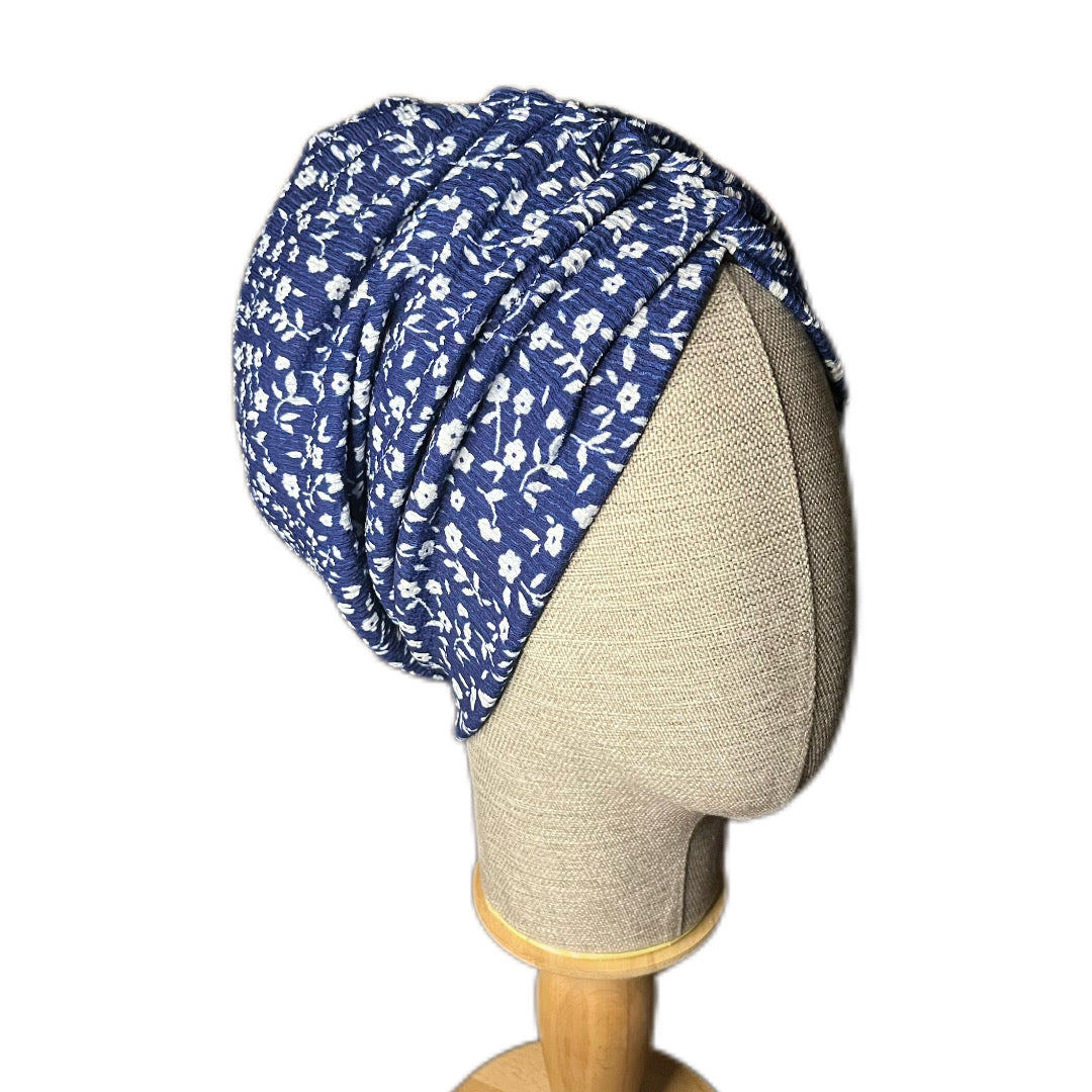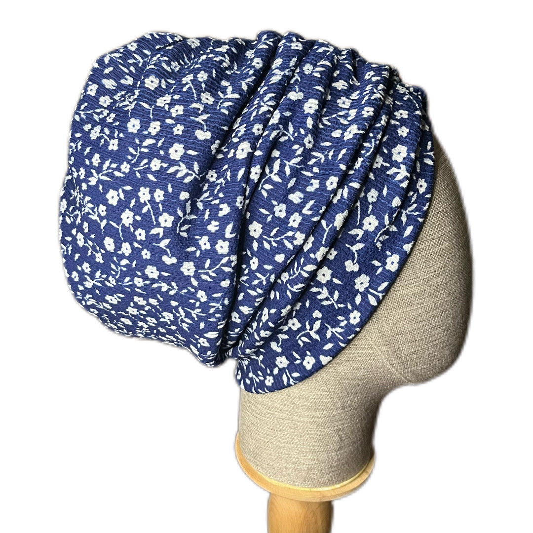 Mavi Çiçek Desenli Bürümcük Büzgülü Bone