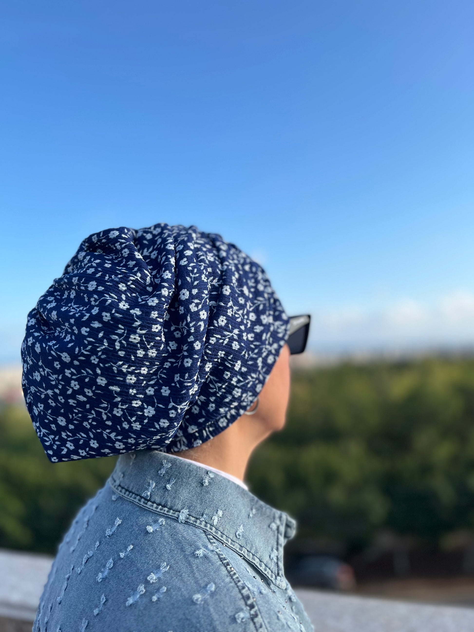 Canlı mavi zemin üzerine zarif beyaz çiçek desenleri ile tasarlanan “Mavi Çiçek Desenli Bürümcük Büzgülü Bone”, feminen ve taze bir görünüm sunar. Esnek bürümcük kumaşı sayesinde hafif, rahat ve gün boyu konforlu bir kullanım sağlar. Büzgülü tasarımı ile pratikliği ve şıklığı bir araya getirir.
