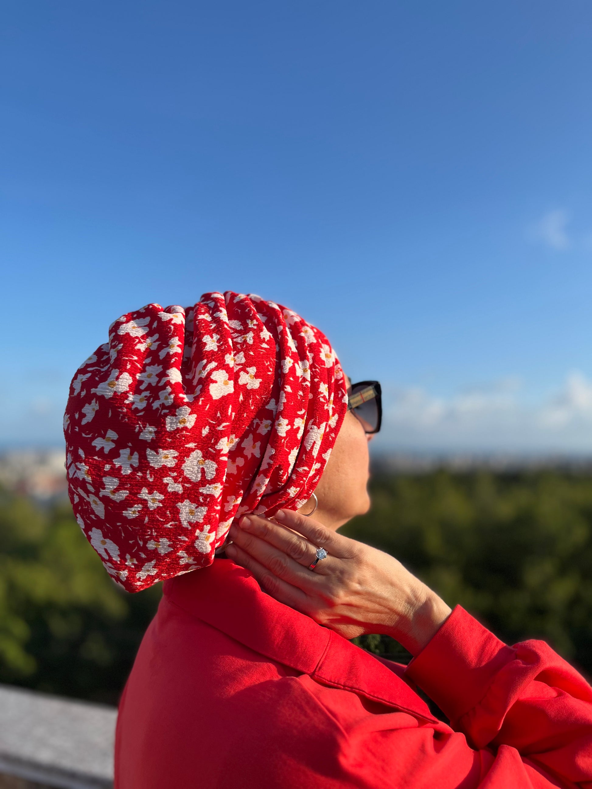 Canlı nar çiçeği rengi ve zarif beyaz çiçek desenleriyle tasarlanan “Nar Çiçeği Bürümcük Büzgülü Bone”, enerjik ve feminen bir tarz sunar. Esnek bürümcük kumaşı sayesinde hafif, rahat ve gün boyu konforlu bir kullanım sağlar. Büzgülü tasarımı ile hem pratik hem de şık bir görünüm elde edersiniz.
