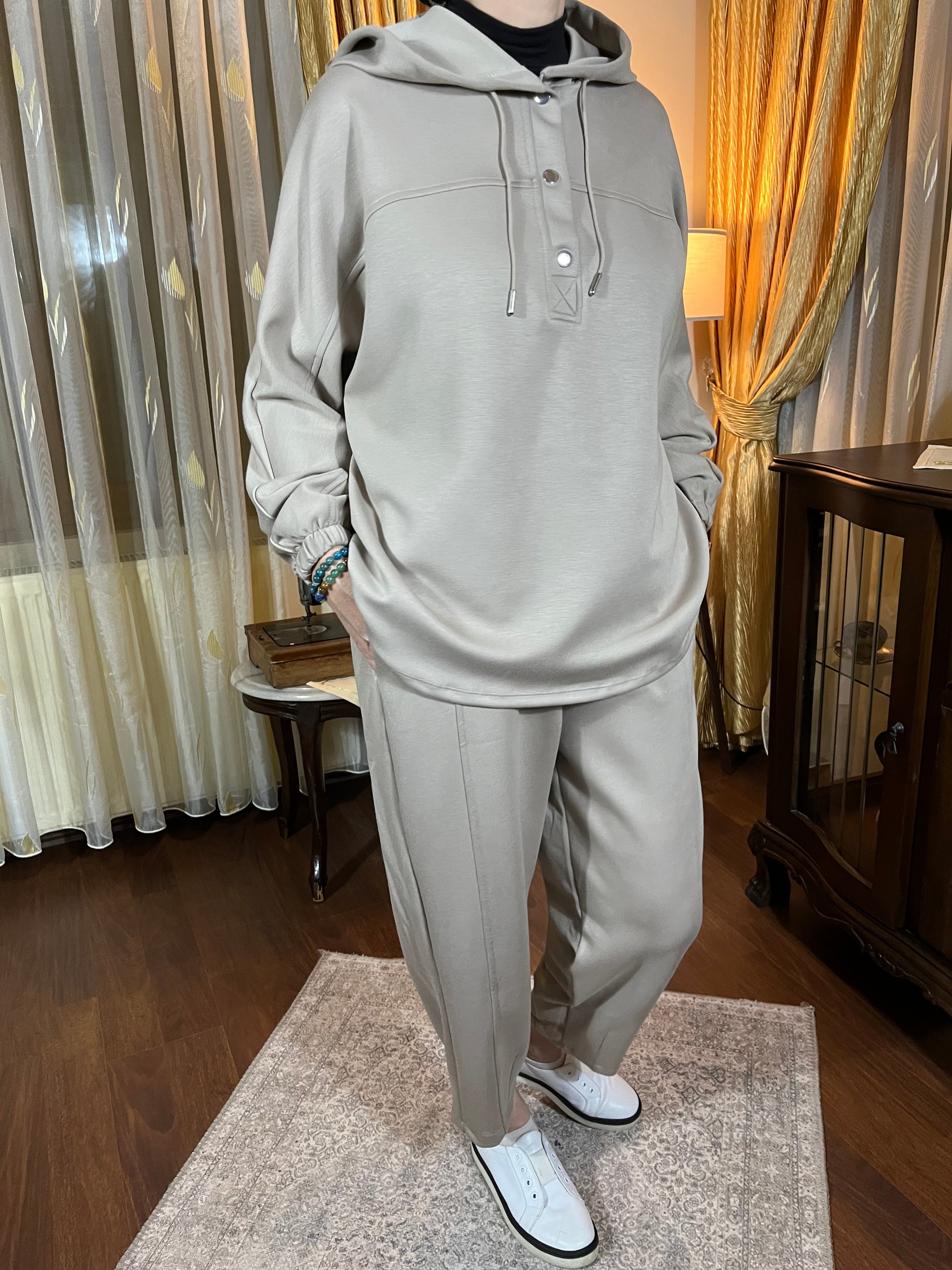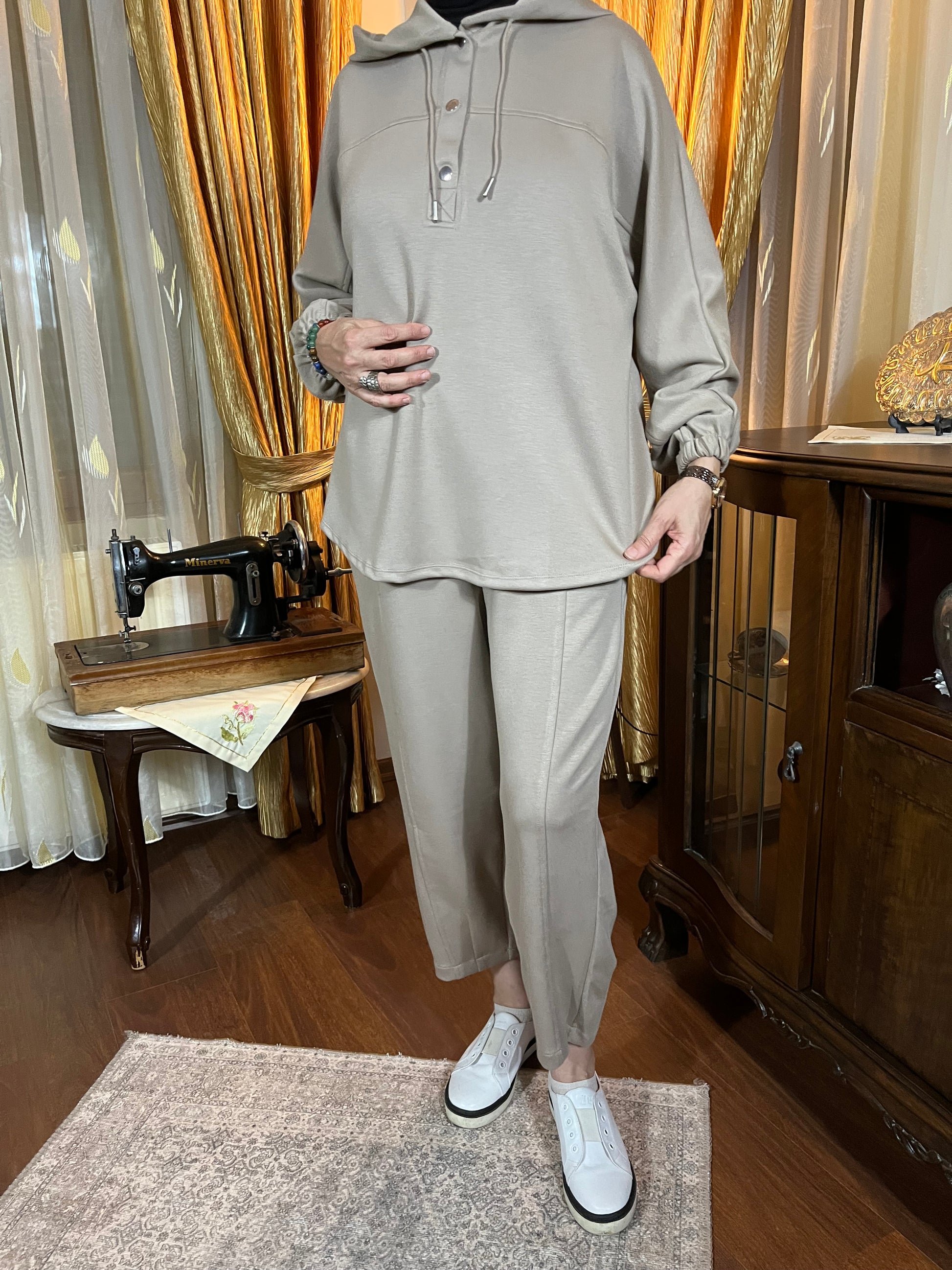 Oysho Kumaş Kapüşonlu Takım (Sütlü kahve)