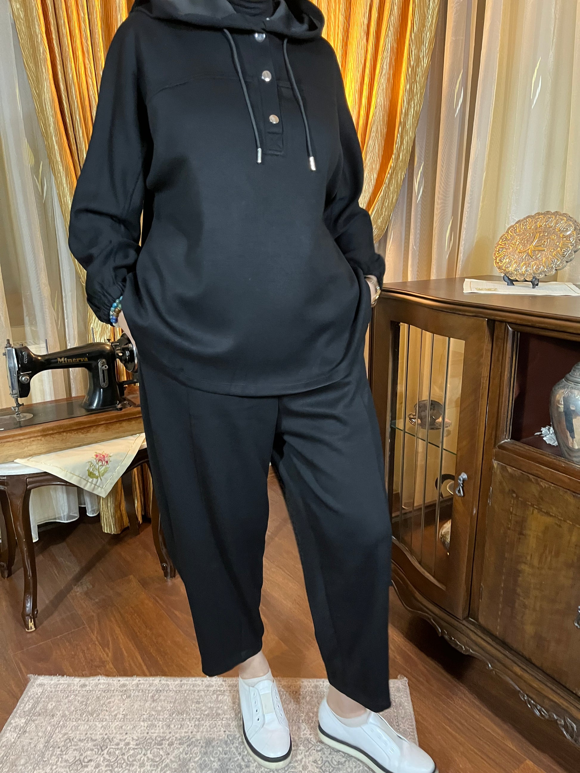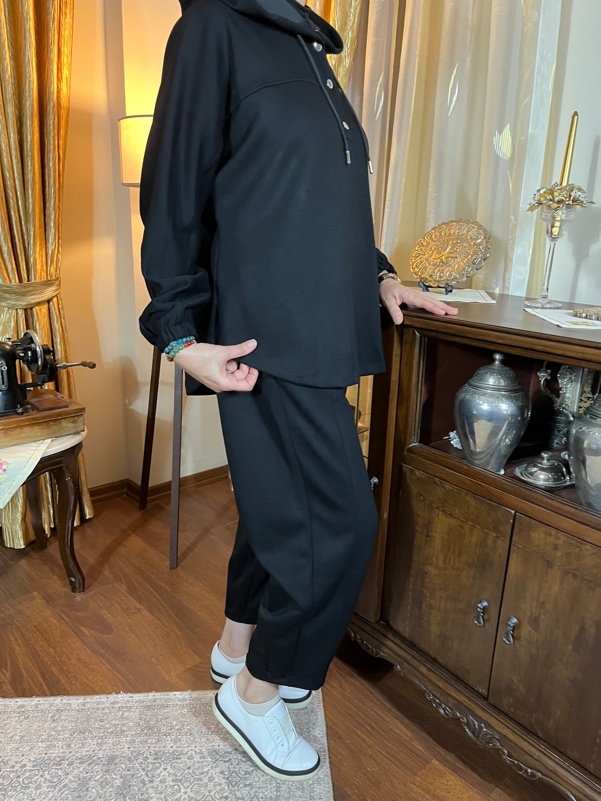Oysho Kumaş Kapüşonlu Takım (Siyah)