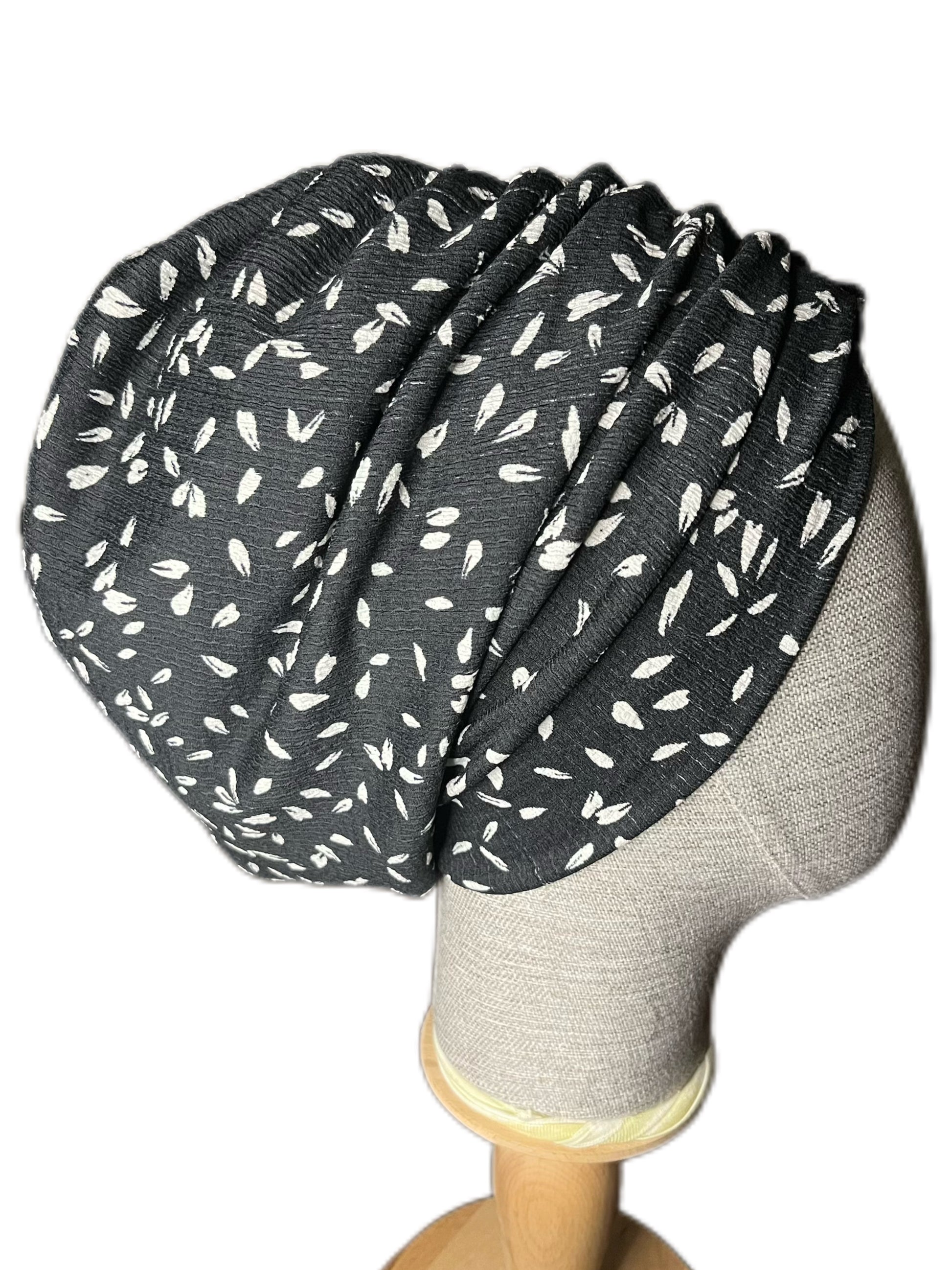 Siyah Beyaz Desenli Bürümcük Büzgülü Bone